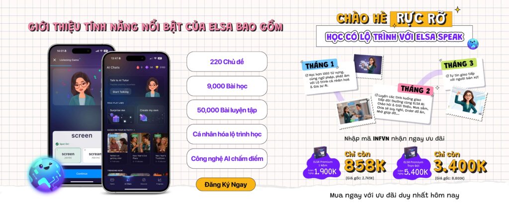 Hiện nay, ELSA Speech Analyzer đã đồng hành cùng 40+ triệu người dùng trên thế giới, 10+ triệu người dùng tại Việt Nam trên con đường chinh phục tiếng Anh. Đăng ký ELSA Speech Analyzer để cùng nâng cấp ngoại ngữ, hiện thực hóa ước mơ du học ngay hôm nay.