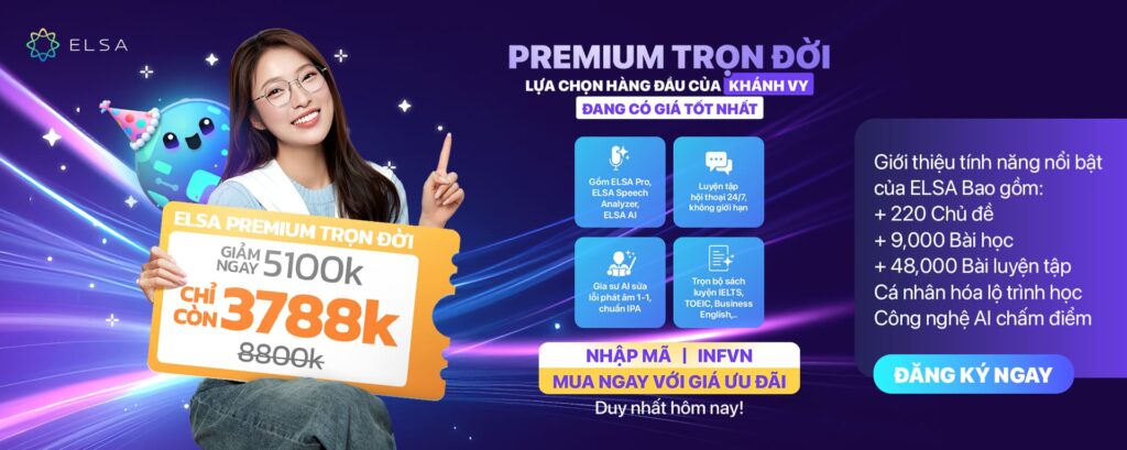 Học vui, học hiệu quả, học không lo về giá! ELSA Speak sẽ giúp bạn giao tiếp tiếng Anh mượt mà với các bài học thú vị. Đừng bỏ lỡ, ưu đãi có hạn! Xem ngay!👇