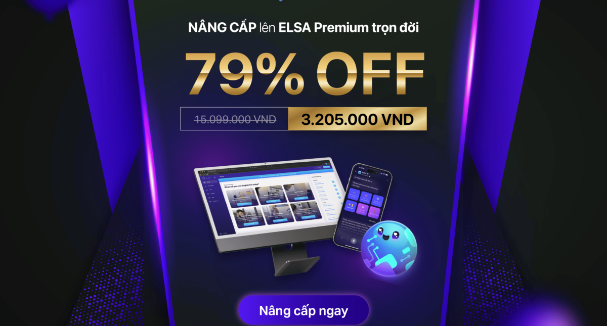Đặc quyền dành riêng cho học viên ELSA Pro Trọn Đời: Nâng cấp ELSA Premium trọn đời với mức giá hấp dẫn